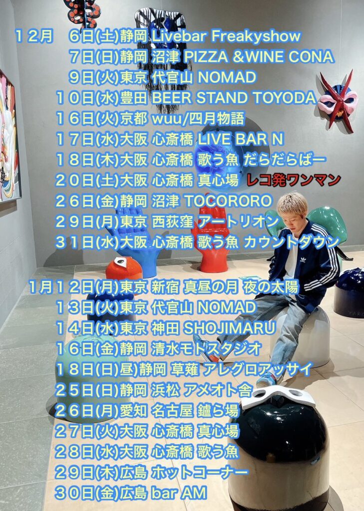 - 11月06日(月)静岡 静岡LIVEHOUSE UHU『浜端ヨウヘイワンマンツアー~O.Aスギタヒロキ』